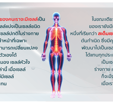 Stem Cell คือ เซลล์ต้นกำเนิด ที่ยังไม่มีหน้าที่เฉพาะเจาะจง ความสามารถของสเต็มเซลล์คือการแบ่งตัวและเปลี่ยนแปลงตัวเองให้กลายเป็นเซลล์เนื้อเยื่อชนิดต่างๆ ได้อย่างมากมาย ไม่ว่าจะเป็นเซลล์ผิวหนัง เซลล์เม็ดเลือด เซลล์ตับ เซลล์ปอด เซลล์หัวใจ ฯลฯ